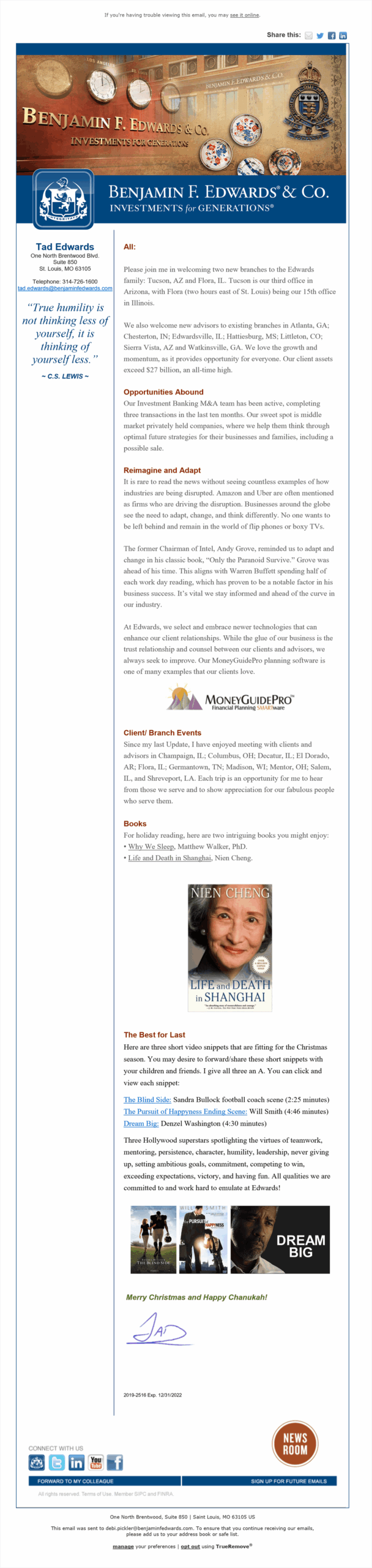 With a legacy spanning 130+ years and six generations of the Edwards family, we remain a privately held firm with no debt, owned by employees, family, and friends.