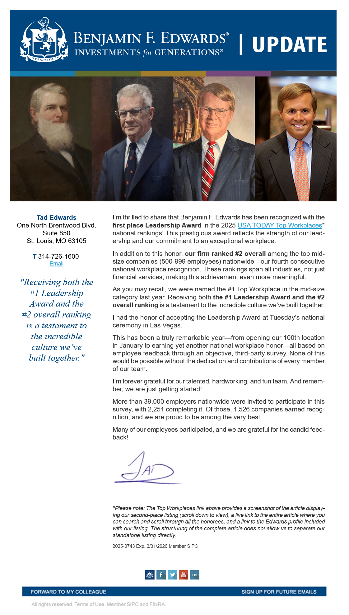 With a legacy spanning 130+ years and six generations of the Edwards family, we remain a privately held firm with no debt, owned by employees, family, and friends.