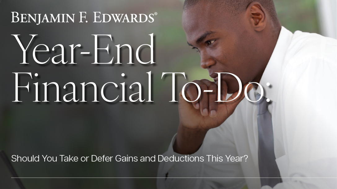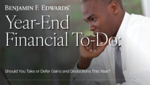 To take or defer deductions is always a complicated and time-sensitive decision. With the uniqueness of laws changing between 2025 and 2026, that decision becomes more difficult. Please remember, Benjamin F. Edwards does not provide tax advice, so it is important to consult with your tax professional for guidance tailored to your specific situation. Doing so may lessen the tax blow for this year and years to come.